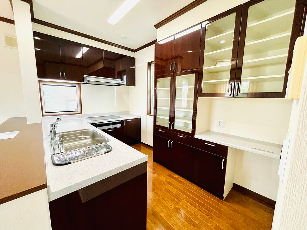 全室床暖房、L字型システムキッチン、造付食器棚、大型洗面台、大型収納多数。豪華設備の住宅です。